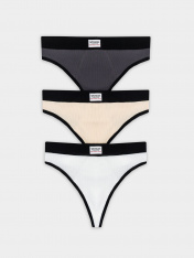 Набор женских трусиков бразилиана — это гармония стиля и комфорта, созданная для вашего удобства. Модель со средней линией талии обеспечивает идеальную посадку, подчеркивая женственность и изящество. Изделия выполнены из рибаны — материала, который славится своей эластичностью и мягкостью, даря ощущение комфорта при носке. Подкладка ластовицы из хлопка добавляет изделиям гипоаллергенные свойства и приятные тактильные ощущения. Завершающий штрих дизайна — тканевая нашивка на талии, которая добавляет изделию оригинальности и утонченного стиля. Эти трусики — превосходный выбор для тех, кто ищет сочетание качества, функциональности и изящного дизайна. Рекомендуем!_x000D_ В наборе: 3 шт._x000D_