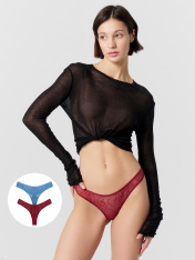 Женские трусики бразилиана мультипак (2 шт.) из эластичного кружевного материала. Тип посадки - средняя. Верхний и нижние срезу трусиков обработаны тесьмой. Очаровательная модель для повседневной носки и особых случаев. За счет тонкого и невесомо материала практически не чувствуются на теле. Трусики не выделяются, а это значит, что их можно с удовольствием носить с обтягивающей одеждой. Красивые, стильные и удобные — лучший вариант для тех, кто устал от обычных классических. Отлично тянутся, хорошо пропускают воздух и не создают парникового эффекта. Купите набор трусиков бразилиана вместе с изящным верхом. Размерный ряд широкий. Порадуйте себя и близких красивым женским бельем на праздники и просто без повода!