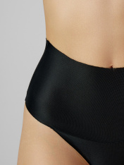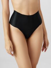 Трусы женские корректирующие, силуэт бразилиано с высокой линией талии и высокой линией ножек. Отрезные горизонтально на уровне линии ножек.Нижняя ластовица выполнена из кулирного полотна и отлетная по переднему краю. Верхние и нижние срезы не обработаны. _x000D_