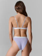 Трусы женские со средней линией талии силуэта «слип» из кулирного полотна.._x000D_ Передняя и задняя детали цельные. Ластовица из кулирной глади отлетная по переднему срезу._x000D_ По талии эластичная тесьма настрочена на п/ш с узким межигольным расстоянием._x000D_ Ножки обработаны швом вподгибку на п/ш машине без эластичной тесьмы.