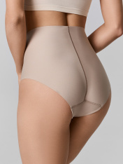 Трусы женские корректирующие, с высокой посадкой, из микрофибры. _x000D_ Подкладка ластовицы из кулирного полотна, отлетная по переднему срезу. Задний шов ластовицы собран накладным швом с верхним застилом._x000D_ Задняя деталь со средним швом, обработана наширителе. _x000D_
