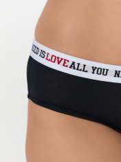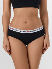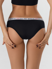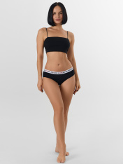 Трусы женские, силуэт - шорты, выполнены из триктажного кулирного полотна. Верхние срезы обработы эл тесьмой 25мм (жаккард JT19-25, Sedat арт. MF D-1 ) на плоскошовной машине. Задняя и передняя деталь цельнокроеные. Подкладка ластовица отлетная по переду из основного полотна.
