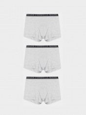 Набор трусов для мальчиков — это комфорт и забота о вашем ребенке. В комплекте три классических цвета: черный, серый и коричневый. Трусы-боксеры выполнены из хлопка, который обеспечивает нежность к коже, воздухообмен и мягкость.<br>_x000D_ <br>_x000D_ Особая конструкция ластовицы обеспечивает анатомичную посадку и защиту, а эластичный пояс мягко фиксирует трусы, не сдавливая и не оставляя следов. Эти трусы для мальчиков подходят для активных игр, школы или отдыха — они не стесняют движений и сохраняют форму даже после множества стирок._x000D_ Если вы ищете, где купить детские трусы в наборе, которые сочетают натуральные материалы, удобный крой и практичность, этот комплект станет отличным выбором._x000D_