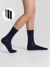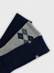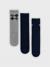 Мультипак из трех пар гладких детских носков с рисунком в виде ромбов и диагональной полоски.