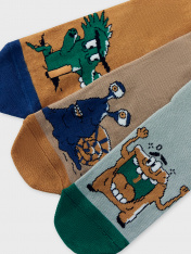 Детские носки мультипак (3 пары) из высококачественного хлопка с рисунком в виде монстриков. Натуральные волокна отлично пропускают воздух и впитывают влагу, дарят ощущение комфорта в течение дня. Благодаря небольшому количеству эластана в составе, высокие детские носки удобно сидят и не сползают, хорошо тянутся и легко надеваются. Пятка и мысок дополнительно укреплены для защиты от протирания. Резинка мягко, но надежно удерживает носки, не оставляя на коже следов. В ассортименте Mark Formelle можно выбрать самые разнообразные дизайны и расцветки: однотонные зеленые, желтые, синие или серые детские носки подойдут и для мальчика, и для девочек, найдутся модели в полоску, с оригинальными авторскими рисунками, орнаментами, а также базовые носки белые и черные детские. Маленьким модникам точно понравятся!