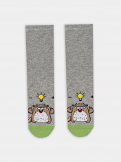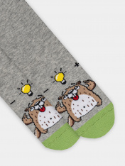 Детские носки серые с рисунком — это забавный аксессуар, который порадует вашего малыша и поднимет настроение. Модель украшена веселым рисунком сурка в стиле «Tuesday» — символом легкости и радости. Гладкое полотно носков обеспечивает комфорт, не натирая нежную кожу ребенка.<br>_x000D_ <br>_x000D_ Состав сочетает натуральность и практичность. Хлопок дарит мягкость и воздухообмен, полиамид повышает износостойкость, а эластан предотвращает сползание и сохраняет форму даже после активных игр.<br>_x000D_ <br>_x000D_ Эти носки с рисунком сурка идеальны для повседневной носки, прогулок или детского сада. Если вы ищете, где купить детские носки с качественным составом и позитивным дизайном, эта модель станет отличным выбором. Яркий принт и комфорт порадуют и детей, и родителей!_x000D_