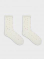 рис.3165 Детские классические носки выполненных перекидным переплетением (лапша) с рисунком в виде мелких сердечек.