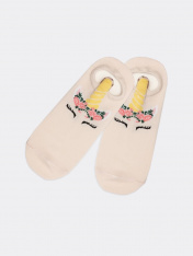 рис.1942 Детский носок гладкий суперкороткий с рисунком в виде единорога и 3-д рисунком.