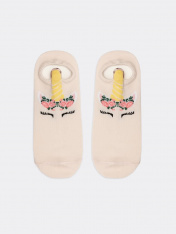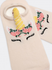 рис.1942 Детский носок гладкий суперкороткий с рисунком в виде единорога и3-д рисунком.