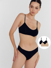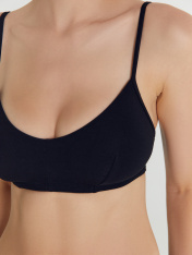 Повседневное бюстье из хлопкового полотна – гипоаллергенного и приятного на ощупь. Мягкие чашки без косточек дарят максимальный комфорт. Бретели тонкие, регулируются по длине.