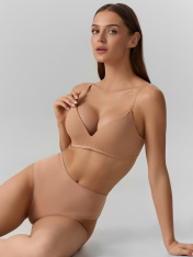 Максимально удобное бюстье женское с формованными чашками без эффекта push-up. Из-за отсутствия косточек модель практически не ощущается и не стесняет движений, что делает его великолепным вариантом для повседневной носки, а также для спорта и активного отдыха. Особый шарм повседневному белью добавляет материал в рубчик. Многолетний опыт производства, множество экспериментальных носок и испытаний позволили создать идеальную модель комфортного, безопасного и красивого нижнего белья. Материалы - только высочайшего качества: дышащие, гипоаллергенные и долговечные. Продуманная анатомическая конструкция гарантирует отличную посадку и надежную поддержку груди. Благодаря гладким чашкам бюстье почти не заметно под одеждой, что позволяет носить егопод облегающими фигуру моделями джемперов и платьев. Рекомендуем!