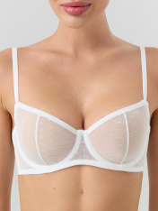Изящный бюстгальтер женский балконет с мягкими чашками и двойным членением представляет собой изысканное нижнее белье, созданное для поддержки и придания красивой формы груди. Изготовленный из кружевного полотна, он восхищает своей элегантностью и красотой. Модель с чашками на косточках, что обеспечивает комфортную посадку и естественное приподнимание груди, создавая желаемую форму и объем. Наличие двойного членения на чашках дополнительно подчеркивает изгибы и контуры. Оснащенный кольцами-регуляторами на бретелях, данный бюстгальтер позволяет самостоятельно настроить длину и обеспечить оптимальную поддержку. Балконет имеет двойную застежку на спинке, что обеспечивает надежную фиксацию и удобство при его носке. Он прекрасно подходит для создания женственного и соблазнительного образа, подчеркивая прелести и индивидуальность каждой женщины. В дополнение к нему вы найдете трусики из этой же капсулы и соберете стильный бельевой set. Рекомендуем!_x000D_