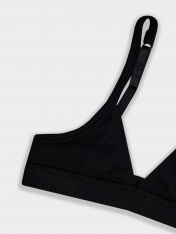 Бюстье для девочек в черном цвете создано специально для юных модниц, которые ценят комфорт и стиль. Прилегающий силуэт без каркаса обеспечивает естественную поддержку, позволяя чувствовать себя комфортно в течение всего дня.<br>_x000D_ <br>_x000D_ Черное бюстье для девочки изготовлено из высококачественного трикотажа, состоящего из хлопка и эластана. Такой состав гарантирует отличную воздухопроницаемость, мягкость и сохранение формы после множества стирок. Чашки с хлопковой подкладкой обеспечивают дополнительный комфорт для нежной детской кожи.<br>_x000D_ <br>_x000D_ Особенностью этого детского бюстье черного цвета является продуманная конструкция. Регулируемые бретели позволяют отрегулировать бюстье по фигуре, а эластичные окантовки по всем краям обеспечивают идеальную посадку. Широкая мягкая резинка по низу надежно фиксирует изделие, не создавая дискомфорта.<br>_x000D_ <br>_x000D_ Купить бюстье для девочки стоит тем, кто ищет качественное первое взрослое белье для юной модницы. Универсальный черный цвет делает его практичным выбором для повседневной носки, занятий в школе или спортивной секции. Минималистичный дизайн без лишних деталей выглядит стильно и современно._x000D_
