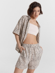 Эти женские домашние шорты — удобный и стильный элемент гардероба! Модель свободного силуэта гарантирует комфорт и непринужденность, идеально подходя для расслабленных домашних образов. Эластичный пояс гарантирует легкую посадку и удобство, а обработка низа шорт швом в подгибку добавляет аккуратности и долговечности. Шорты выполнены из сочетания натурального льна и района — материалов, которые прекрасно дополняют друг друга. Лен обеспечивает легкость, воздухопроницаемость и свежесть даже в жаркие дни, а район добавляет мягкость, эластичность и приятную текстуру, что делает шорты особенно комфортными. Сочетайте эту модель с рубашкой из этой же коллекции бренда для создания гармоничного и стильного комплекта, который будет радовать вас как дома, так и в моменты отдыха. Рекомендуем!