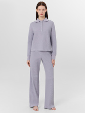 Домашние брюки из стопроцентного хлопка созданы для минут абсолютного отдыха. Модель прямого свободного силуэта со средней посадкой обеспечивает неограниченную свободу движений во время отдыха или домашних дел. Широкий пояс со встроенной эластичной лентой мягко облегает талию, обеспечивая комфорт без давления.<br>_x000D_ <br>_x000D_ Боковые швы аккуратно подчеркивают силуэт, сохраняя его лаконичность. Натуральный хлопок обеспечивает идеальную воздухопроницаемость, даря коже ощущение свежести и невесомой мягкости._x000D_ Аккуратная обработка низа брюк обеспечивает опрятный вид и сохранение формы после множества стирок. Нежный розовый цвет добавляет образу теплоты и уюта, делая эти брюки отличным выбором для спокойных вечеров, утреннего отдыха или занятий любимыми делами в стенах дома. <br>_x000D_ <br>_x000D_ Брюки сочетают в себе практичность, качество и эстетику повседневного комфорта._x000D_