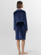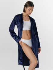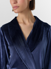 Велюровый халат для женщин — это уют, который чувствуется с первого прикосновения. Модель длиной до колена с мягким запахом и поясом нежно обволакивает фигуру, создавая ощущение теплой заботы. Длинные рукава и удобные боковые карманы обеспечивают максимальный комфорт во время носки._x000D_ Бархатистый велюр с добавлением эластана мягко облегает фигуру, сохраняя тепло и даря невероятные тактильные ощущения. В этом халате так приятно пить утренний кофе, читать книгу вечером или встречать близких — вы всегда будете выглядеть собранной и элегантной даже в моменты отдыха.<br>_x000D_ <br>_x000D_ Практичная петелька для вешалки и классический вырез горловины подчеркивают продуманность каждой детали. Подарите себе моменты неги и расслабления с этим элегантным халатом — в нем вы будете чувствовать себя особенной каждый день_x000D_