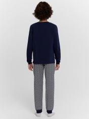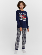 Комплект для мальчиков состоит из джемпера с длинным рукавом и брюк. Изготовлена модель из высококачественного хлопка, что обеспечит комфорт как в летний, так и в зимний период. Пижама для подростка мальчика отлично подходит для отдыха в комфортнойдомашней обстановке и сна. Пижама детская — отличный подарок ребенку на любой праздник. Обязательно понравится ребенку, ведь она выполнена в трендовых цветах и украшена милыми и оригинальными рисунками. Широкий размерный и цветовой ряд. Рекомендуем!