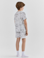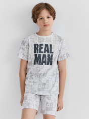Универсальная пижама для мальчиков из высококачественного хлопка. Состоит из футболки с коротким рукавом и шорт. Футболка свободная, с круглой горловиной. Шорты длиной до колен, с эластичной тесьмой в поясе. Изготовлена пижама для мальчика из высококачественного натурального материала, что обеспечивает комфорт как в летний, так и в зимний период. Материал отлично тянется, хорошо впитывает влагу и быстро сохнет, не сковывает движений и не создает парникового эффекта. Отличный вариант для каждодневной носки. Пижама детская для подростка мальчика отлично подходит для отдыха в комфортной домашней обстановке и сна. В линейке много интересных расцветок, есть красивые варианты с принтами. Если вы устали от простых и не замысловатых моделей и хотите разнообразить гардероб вашего ребенка, этот вариант порадует. Такая пижама понравится всем мальчикам и подросткам, ведь она выполнена в ярких цветах и украшена рисунками. Купить пижаму детскую недорого можно у нас на сайте и в магазинах Mark Formelle!
