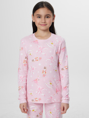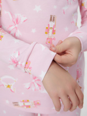 Пижама для девочек с новогодним принтом — идеальный комплект для уютных зимних вечеров. Набор из джемпера и брюк выполнен из мягкого футера, который согревает и обеспечивает комфорт во время сна._x000D_ Свободный крой джемпера с длинными рукавами и эластичными манжетами не сковывает движений. Брюки с широким поясом на резинке мягко сидят по фигуре, не сползая во время сна. Манжеты на штанинах обеспечивают идеальную посадку, сохраняя тепло и комфорт на протяжении всей ночи.<br>_x000D_ <br>_x000D_ Яркий новогоднийпринт с тематическими узорами создает праздничное настроение, напоминая о приближении самого волшебного времени года. Натуральный состав ткани обеспечивает оптимальный температурный режим, даря комфорт во время сна, а прочные материалы сохраняют внешний вид даже при активном использовании.<br>_x000D_ <br>_x000D_ Пижама станет прекрасным подарком для маленькой принцессы — практичная, красивая и такая уютная. Комплект подойдет для холодных вечеров, новогодних каникул или крепкого сна._x000D_