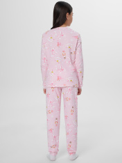 Уютный комплект для девочек, состоящий из джемпера с длинными рукавами и брюк. Джемпер свободного силуэта. Перед и спинка цельнокроеные. Горловина круглой формы из основного полотна. Рукава втачные, низ рукавов с притачными манжетами. Брюки прямые, с притачными манжетами. Пояс с эластичной тесьмой, которая обеспечивает отличную посадку. Стильная и комфортная детская пижама — лучший вариант для прохладного времени года. Широкий размерный ряд, красивые расцветки моделей в линейке. Рекомендуем!