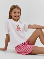 Футболка, шорты Mark Formelle 567748/25-39524ПП-14 белый_розовая_клетка_3_сл_на_пол