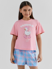 Футболка, шорты Mark Formelle 567748/25-39525ПП-14 розовый_розово_голубая_клетка_3_сл_на_пол
