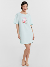 Универсальная ночная сорочка женская свободного силуэта из высококачественного хлопка. Длина выше колена. Рукава короткие, вырез классический – круглый и неглубокий. Нижняя часть сорочки закруглена. Минималистичный фасон. Длина выше колен. Такая модель сорочки женской отлично подходит для расслабленного отдыха и домашних дел, в ней можно спать. Деликатная обработка швов ночной сорочки, позволяет носить модель беременным девушкам, носить кормящим и взять с собой в роддом, а еще эта модель отлично тянется и не сковывает движений. В линейке много интересных и милых расцветок. Вы будете выглядеть красиво и ухоженно. Каждая представительница прекрасного пола найдет в линейке что-то свое. Такую модель можно носить также как домашнее женское платье за счет простого фасона. Лучший выбор одежды для дома на каждый день от Mark Formelle. Для приятных снов и домашнего отдыха!