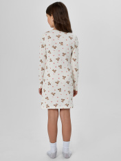 Сорочка полуприлегающего силуэта для девочек. Горловина V-образной формы, обработана кружевом Devsel L20166-1.5, ширина 15мм. Рукава длинные втачные, одношовные. Перед и спинка цельнокроеные. Низ изделия и рукавов обработаны на 2-х игольной плоскошовной машине швом в подгибку._x000D_ Декор по заданию - бантик (6737-0011А)