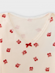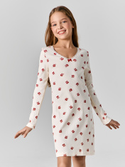 Сорочка полуприлегающего силуэта для девочек. Горловина V-образной формы, обработана кружевом Devsel L20166-1.5, ширина 15мм. Рукава длинные втачные, одношовные. Перед и спинка цельнокроеные. Низ изделия и рукавов обработаны на 2-х игольной плоскошовной машине швом в подгибку._x000D_ Декор по заданию - бантик (6737-0011А)