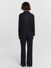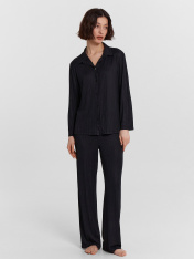 Комфортная пижама женская в "костюмном стиле" из высококачественного материала для приятных снов и домашних дел. Рубашка прямая, с отложным воротником, длинными комфортными рукавами, застегивается на пуговицы. Дополняют ее легкие брюки с посадкой наталии свободного силуэта. Пояс цельнокроеный с тесьмой эластичной внутри. В пижаме абсолютно не жарко, комфортный материал не сковывает движений. Красивая и интересная модель на каждый день. Такую пижаму можно использовать как комплект одежды для дома и отдыха, или как пижаму для сна. В линейке много интересных расцветок, широкий размерный ряд, есть актуальные варианты для девушек с пышными формами plus-size. Купить пижаму женскую недорого можно у нас на сайте и в магазинах. Лучший выбор домашней одежды на каждый день от Mark Formelle. Рекомендуем!