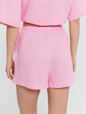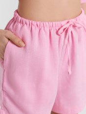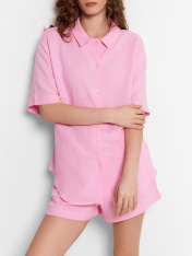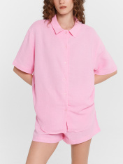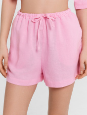 Женская пижама, выполненная из сочетания льна и вискозы. Она сочетает в себе стиль и комфорт, идеально подходя для повседневного ношения дома. Рубашка свободного силуэта с отложным воротником и короткими рукавами имеет центральную застежку на пуговицах, что обеспечивает удобство и легкость в носке. Шорты свободного кроя с высокой посадкой и карманами в боковых швах добавляют практичности и комфорта. Модель выполнена из натурального льна и вискозы. Такое сочетание материалов обеспечивает оптимальный комфорт и долговечность. Лён - это натуральный материал, который обладает отличными дышащими свойствами и дарит прохладу в жаркие дни. Вискоза, в свою очередь, добавляет мягкости и шелковистости, делая изделие особенно приятным к телу. Эта пижама станет вашим любимым выбором для уютных вечеров и расслабленного отдыха дома.