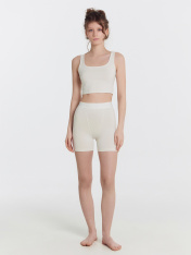 Стильный женский комплект состоящий из топа и шорт. Топ прилегающего силуэта. Перед и спинка цельнокроеные. Горловина формы каре. Шорты облегающего силуэта. Спереди - декоративная отрезная деталь и имитация гульфика. По верхнему срезу выполнена жаккардовая эластичная тесьма, которая надежно удерживает топ и гарантирует отличную посадку. Пижама женская выполнена из высококачественного хлопка. Такой комплект можно использовать дома для сна, отдыха и занятий спортом. Широкий размерный ряд, красивые базовые цвета в линейке. Рекомендуем!