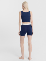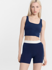 Стильный женский комплект состоящий из топа и шорт. Топ прилегающего силуэта. Перед и спинка цельнокроеные. Горловина формы каре. Шорты облегающего силуэта. Спереди - декоративная отрезная деталь и имитация гульфика. По верхнему срезу выполнена жаккардовая эластичная тесьма, которая надежно удерживает топ и гарантирует отличную посадку. Пижама женская выполнена из высококачественного хлопка. Такой комплект можно использовать дома для сна, отдыха и занятий спортом. Широкий размерный ряд, красивые базовые цвета в линейке. Рекомендуем!