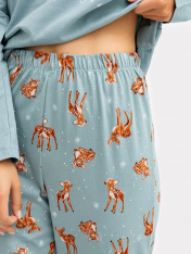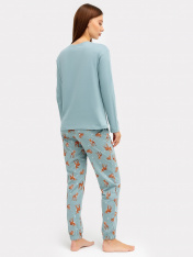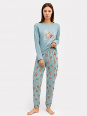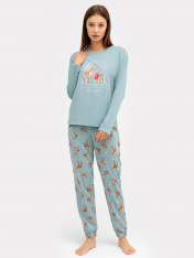 Милый женский комплект из высококачественного хлопка с принтом. Джемпер свободного силуэта с круглой горловиной и длинными рукавами. Свободные брюки, чуть зауженные к низу, длиной до косточки, с классической линией талии и эластичной тесьмой в поясе.Идеальный вариант пижамы на каждый день. Широкая размерная сетка, есть модели plus-size, в линейке много базовых и других милых расцветок пижам. Рекомендуем для сна, отдыха и домашних дел, а также в качестве приятного подарка для любимых!