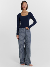 Пижамный комплект женский, состоящий из джемпера и брюк. Модель выполнена из высококачественного хлопка. Джемпер прилегающего силуэта, с длинными рукавами и немного спущенной линией плеча. Горловина формы каре. Брюки полной длины, широкие, с эластичной тесьмой в поясе. Лаконичный дизайн комплекта, выдержанный в спокойных и универсальных оттенках, позволяет создавать стильные и уютные образы для дома. Высокое качество материалов гарантируют долговечность этого пижамного комплекта. Он сохранит первоначальный вид даже после многократных стирок, не теряя формы и не выцветая при правильном уходе. Эта женская хлопковая пижама станет воплощением комфорта и элегантности для девушек, ценящих удобство и стиль в домашней одежде. Широкий размерный ряд. Отличный вариант для сна, отдыха и домашних дел!