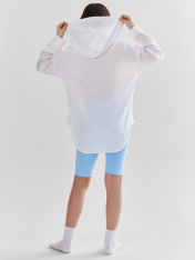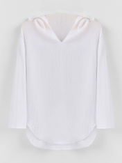 Туника для девочек свободного силуэта с капюшоном, выполнена из муслина. Горловина V-образная. Длина - ниже бедра. _x000D_ Спинка удлиненная. Рукава длинные втачные, линия плеча спущена._x000D_ Низ изделия и рукавов обработаны в подгибку. _x000D_ _x000D_
