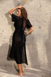 Эффектная длинная туника черного цвета. С кружевными вставками, которые на этот раз входят в контрастный цвет старого золота. Кружево в виде акцентов на плечах и спине выглядит роскошно и сексуально. Туника имеет завязку, расположенную как внутри туники, чтобы красиво поддерживать форму, так и снаружи, вы можете создать из нее бант, например, на стороне бедер или над попой. Все выполнено из слегка прозрачной итальянской ткани. Состав: 80% полиамида, 20% эластана.