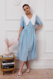 Платье с нагрудными вытачками и эффектом мятости Marshop М174 голубой