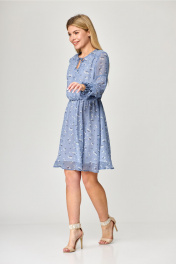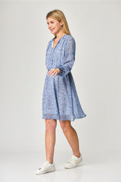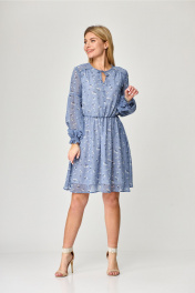 Платье с рельефами и асимметричным подрезом MarSo 2079 голубой_мелкий_цветочек