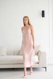 Платье-комбинация из шелковистой ткани длины миди - must-have женского гардероба. Это один из универсальных вариантов, который подходит как для торжественного мероприятия, так и для повседневной жизни. Скроено по косой, что позволяет платью струиться и создавать свободное облегание; такой эффект невероятно стройнит. Регулируемые бретели позволяют менять длину платья и глубину декольте. Нагрудные вытачки деликатно подчёркивают достоинства фигуры. Такой вариант платья прекрасно подчеркнёт вашу фигуру и сделает образ незабываемым! Рекомендации по уходу - на этикетке. Размеры соответствуют стандартной размерной сетке. Дополнительные замеры: Длина переда от точки втачивания бретели 112см.