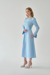 Голубое нарядное платье с шнуровкой и стразы Мастер Мод 838ас голубой