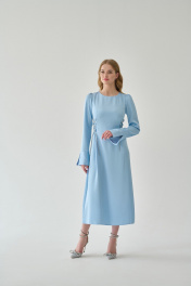 Нарядное платье из новой коллекции для неотразимого образа на выпускном, свадьбе или другом важном мероприятии. Рельефные швы формируют приталенный силуэт, деликатно повторяют естественные изгибы тела. Шнуровка по бокам обеспечивает идеальную посадку по фигуре, так как даёт возможность регулировать ширину платья. Для удобства в среднем шве спинки предусмотрена потайная молния длиной 50см. Круглая горловина, втачной длинный рукав, который заканчивается притачным манжетом с кокетливым разрезом, сборка по окату рукава, длина миди - всё это делает наше платье очень нежным и романтичным. А особый шарм придают фактурная ткань атласного переплетения и акцентный шнур со стразами. Деликатная ткань не выгорает, не пилингуется, при этом тактильно приятна и очень комфортна. При правильном уходе наше шикарное платье прослужит долго и обеспечит вас множеством комплиментов. Рекомендации по уходу - на этикетке. Размеры соответствуют стандартной размерной сетке. Длина рукава 67см. Длина по спинке 118см.