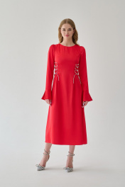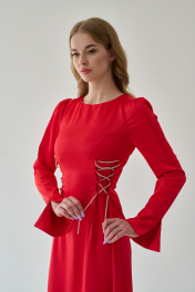 Красное нарядное платье с шнуровкой и стразы Мастер Мод 838ас красный