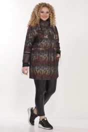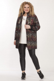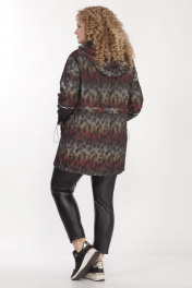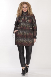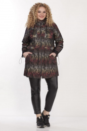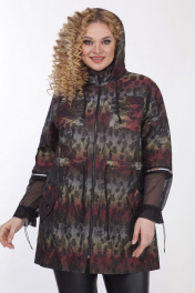 Куртка женская,прямого силуэта,застежка центральная на молнию,с капюшоном. По переду накладные карманы по линии груди и по линии бедер прорезные карманы с клапаном и декоративной пуговицей. Рукав скомбинирован из основной ткани и трикотажной сетки. По низу рукав присобран шляпной резинкой с фиксатором. Шов соединения частей рукава декорирован тесьмой. По линии талии кулиса с декоративным шнуром. Капюшон двойной, основная ткань и сетка. Куртка на подкладке. Длина по спинке 84см, длина рукава 45см, ширина рукава на уровне глубины проймы 56-50см, 58-51см, 60-54см, 62-56см. Реальные замеры изделия 56 ог-138см, от-128см, об-134см, 58 ог-142см, от-132см, об-138см, 60 ог-146см,от-136см, об-142см, 62 ог-150см, от-140, об-146см.
