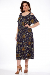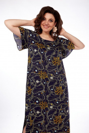Платье женское свободного покроя из вискозы. По переду вырез горловины круглый,по спинке V-образный с перемычками. В боковых швах выполнены карманы. Платье на бретелях с крылышками. Длина по спинке 104 см, длина рукава 19 см, ширина рукава на уровне глубины проймы 52-24 см, 54-25 см, 56-26 см. Реальные замеры ОГ 52-110 см, ОТ-120 см, ОБ-130 см, ОТ 52-120 см, 54-124 см, 56-128 см, ОБ 52-130 см, 54-134 см, 56-118 см.
