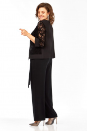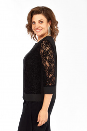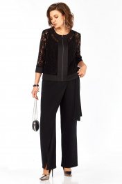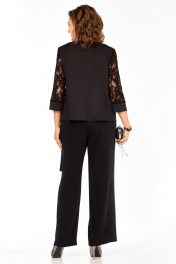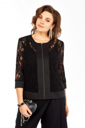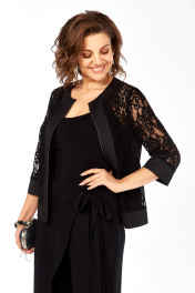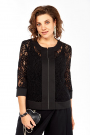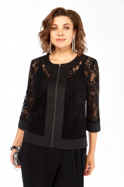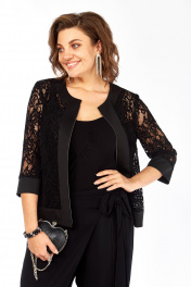 Жакет женский, без подкладки, застежка центральная на разъемной молнии. Горловина круглая. Полочки с нагрудными вытачками, отрезными планками по горловине. Край борта, низ полочки и спинка из отделочной ткани. Спинка со средним швом. Рукав одношовный с отрезной манжетой 3/4.