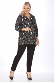 Блузка женская свободного покроя. Вырез горловины V-образный с планками и линией плеча, верх рукава обработан застежкой на петли-пуговицы, по низу выполнена манжета. Длина изделия 79,5 см, длина рукава от плечевого шва 63 см. Реальные замеры 54 ог-126см, от-124см, об-128см, 56 ог-130 см, от-128см, об-132см, 58 ог-134см, от-132 см, об-136см, 60 ог-138см, от-136см, об-140см.