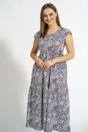 Платье трапециевидного силуэта, расширенное к низу; рукав цельновыкроенный короткий