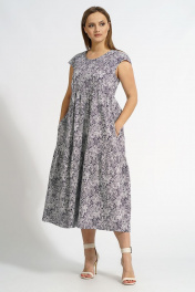 Голубое платье трапеция с коротким рукавом из хлопка Медея и К 2200 бело-голубое