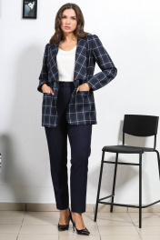 Деловой синий жакет без застежки с подкладкой Медея и К 2217